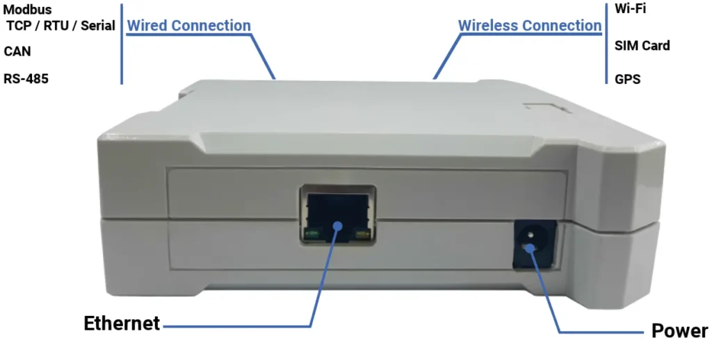 این محصول مجهز به درگاه‌های اتصالی متنوع از جمله USB، LAN، RS485  و پشتیبانی از پروتکل‌های صنعتی مانند Modbus و CAN است که امکان ارتباط پایدار با تجهیزات مختلف را فراهم می‌سازد. همچنین قابلیت اتصال با سیم و بی‌سیم (Wi-Fi  و ۳G/4G) باعث می‌شود در هر محیط صنعتی، حتی در شرایطی که کابل‌کشی دشوار است، انتقال داده‌ها بدون وقفه انجام گیرد. چنین انعطافی موجب می‌شود IIoT Gateway دیناسافت در صنایع گوناگون با کمترین محدودیت نصب و بیشترین بازدهی به‌کار گرفته شود.